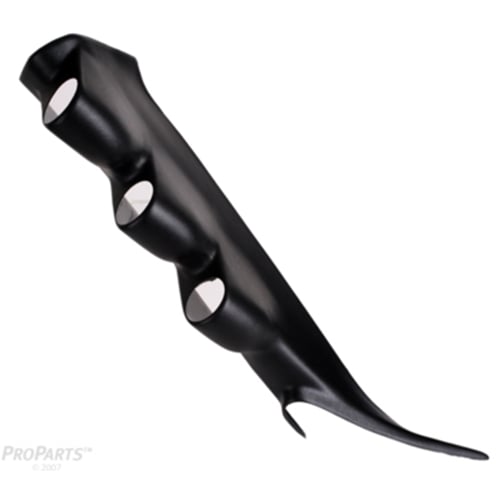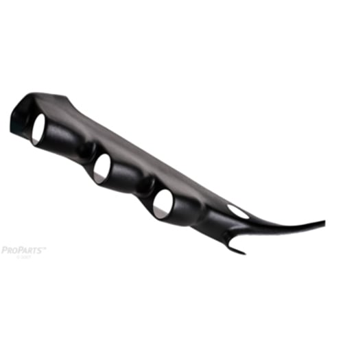 This mount will hold three gauges mounted on the A-Pillar for easy viewing of a pyrometer gauge, boost gauge, fuel pressure gauge, etc. Mount comes in black, but is a paintable surface.