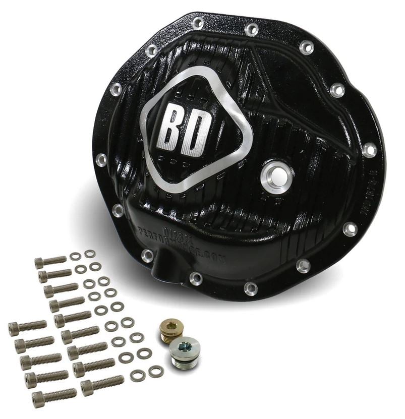 Keep your front differential running cool and looking even cooler with this replacement front diff cover from BD. Made from cast aluminum, BD differential covers have both internal and external fins for extra cooling plus a sleek curved design. Comes with separate fill and drain ports with stainless steel plugs for easier servicing. Includes stainless steel Allen head cap bolts and magnetic drain plug to help capture suspended material in the oil. Designed to be compatible with aftermarket track bars.