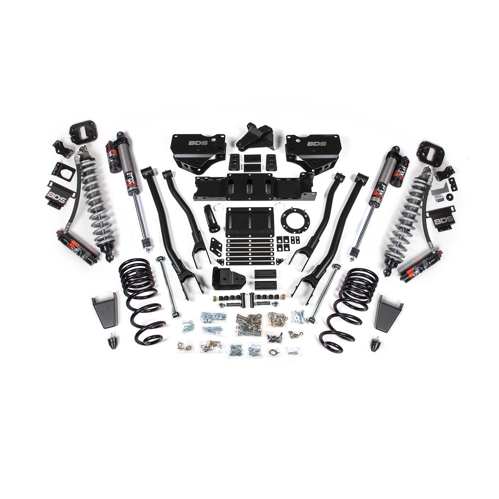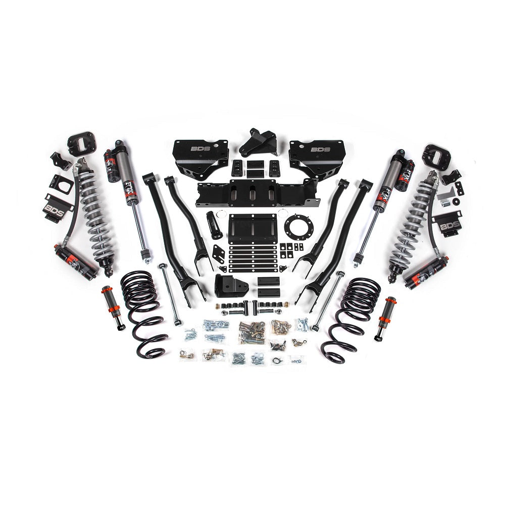 Need to ditch your stock suspension for some serious hardware? For those who want the ultimate upgrade to your truck, BDS Suspension has created the Coil-Over Conversion 4" Lift Kit with 4-Link. No matter the conditions or the reasons you can be sure when you look down a road you have never been down that you can drive with confidence. The full-stock setup is replaced with serious hardware that you can both see and feel behind the wheel. Heavy-duty BDS 4-Link arms for better articulation and rugged strength to handle anything the trail throws at you. On top of that you get a full BDS Coil-Over Conversion Kit outfitted with FOX Performance Elite coilovers. What do coilovers give you? Precision damping, supreme control, and a plush ride quality you won't get anywhere else. Does everyone need coilovers on their truck? Honestly, no but are you just anybody? Be ready for any terrain and make your truck the envy of the county with BDS Suspension 4" 4-Link Lift Kit with FOX 2.5 Coil-Over Conversion!