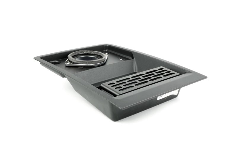 Installation is very straight forward. The laser cut and CNC formed bracket attaches to the tray located above the dash using four machine screws, included in the hardware kit. The four .25" holes used must be drilled by the user in the OEM tray. Should you choose to return to stock, the OEM rubber mat inside the tray conceals the holes.