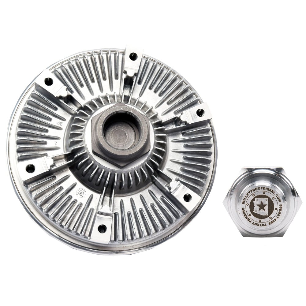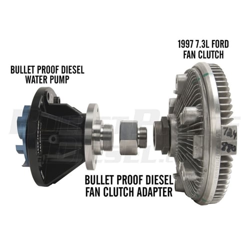 The Bullet Proof Diesel Fan Clutch Adapter will allow you to convert your fan clutch from the electrical, computer controlled 6.0L cooling fan assembly to the rugged, mechanical fan clutch found on the 1997 Ford 7.3L diesel.
