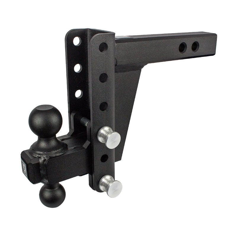 Each adjustable mount includes a 2-ball platform, which fits in the adjustable channel of the hitch. The 2 hitch balls are welded together onto the solid steel platform for maximum strength and stability.The hitch shank is solid steel all the way through and has chamfered edges so it can easily slide into & out of your hitch receiver. It also comes with two pin holes for more adjustment options. Components of the BulletProof Hitch are machined in house on our state of the art Haas CNC machines. Our CNC machines use Renishaw probes which allow us to manufacture all parts to an extremely tight tolerance. This ensures that the hitch and ball combo fit together without slop or excess movement when attached to your vehicle.