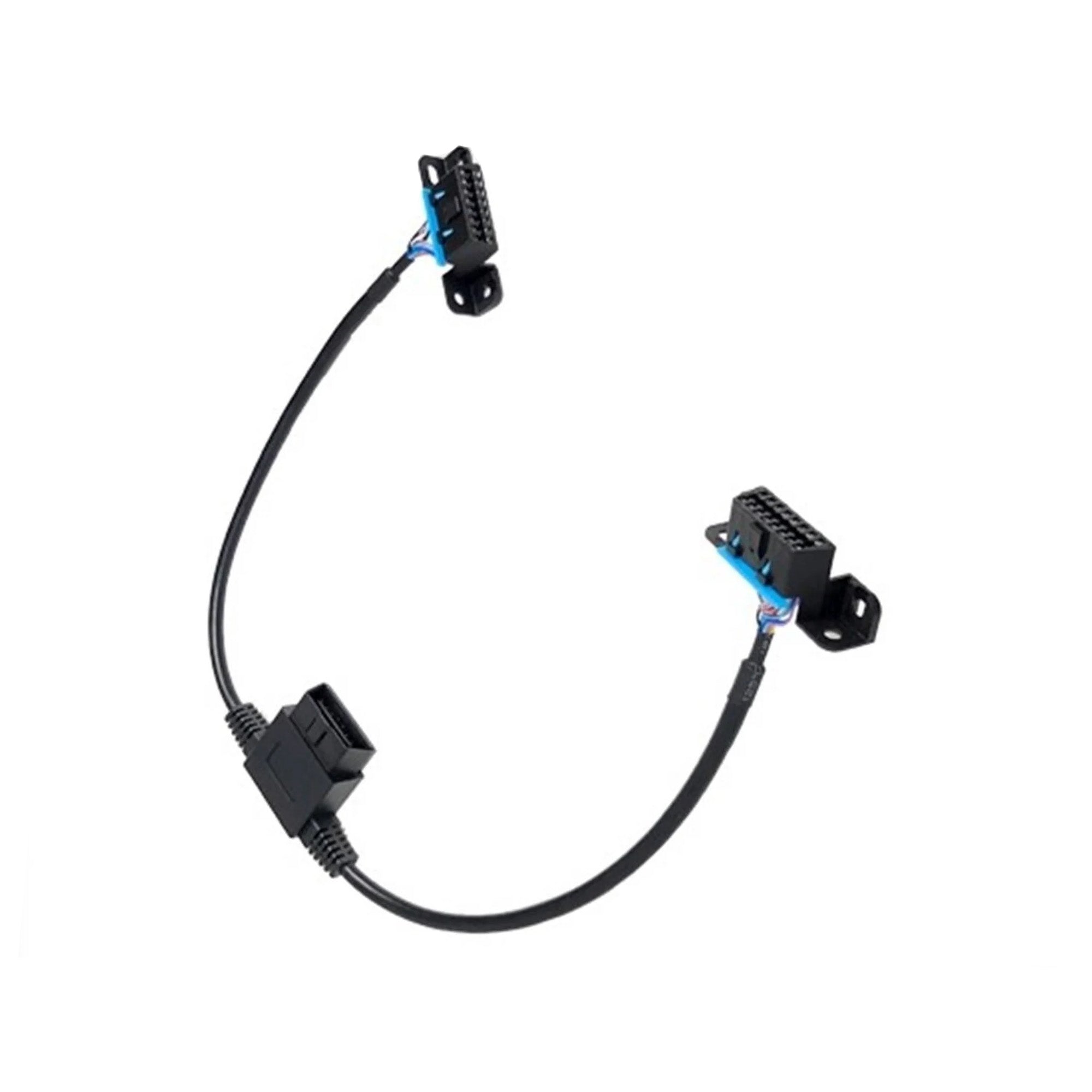 The OBDII Pass-Through Splitter allows two products to be simultaneously plugged into the OBDII port at the same time. The OBDII pass-through gives the ability to connect two products, such as an Edge CTS2 unit, and another product, including, but not limited to, power running boards or custom tuning devices. This new OBDII splitter is fully populated with a 16-pin pass-through, pinned connector.