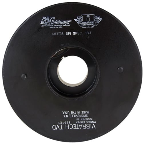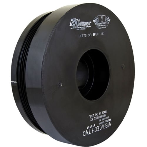 Why Do I Need A Performance Harmonic Balancer, aka Crankshaft Damper - Performance parts that increase torque, such as intake, exhaust, cams, and ECM changes typically cause an increase in torsional vibration magnitude, but keep frequency the same. Evidence that your stock harmonic balancer is not performing adequately will be cracked, bulging or missing rubber between the hub and outer ring. This is caused by excessive heat retention, over stretching and age. A common failure will be the outer ring separating from the hub causing damage inside the engine bay. Most race sanctioning bodies require a SFI 18.1 spec damper as a safety caution.