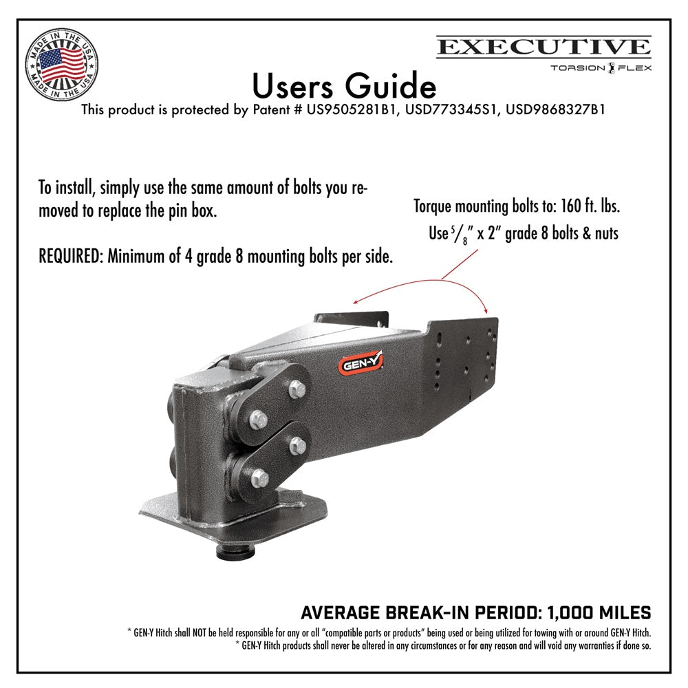 Are you an RV enthusiast looking for a smoother, safer ride this season? The Gen-Y Executive 30K Fifth Wheel King Pin Box keeps your family comfortable by isolating your truck from the trailer with Torsion-Flex technology, reducing up to 90% of shock transfer. Built from heavy-duty steel with a durable powder coat finish, it’s made to last for years of reliable towing. With adjustable pin weights of 4.5, 6.5, and 8.5, this pin box offers versatility for a variety of fifth wheel setups, giving you a safe, controlled ride no matter the journey!