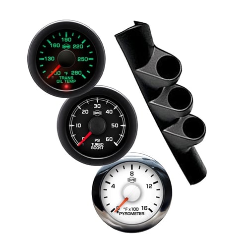 We offer you the unique opportunity to put together exactly the gauge kit that you want for your truck with our "Build Your Own Gauge Kit" option. Of course, if you want the standard Pyrometer, Boost and Transmission Temperature gauge kits we have those too. But if you want to add additional gauges that ISSPRO offers, such as electronic fuel pressure, rail pressure (Cummins), High Pressure Oil Pump pressure (Ford) we can supply them in any combination that you want.