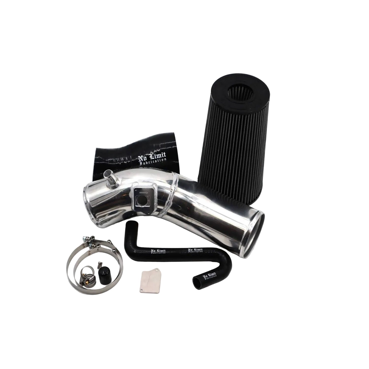 No Limit's cold air intake features a 5" diameter inlet pipe leading to the standard VGT S300 inlet or the 5" S400 inlet that will outflow any other intake on the market, as it utilizes the exclusive No Limit 5" x 12" AFE Filter coupled with smooth, mandrel-bent piping for superior performance. This intake will increase horsepower and torque, boost throttle response, reduce smoke output, and even improve fuel mileage.