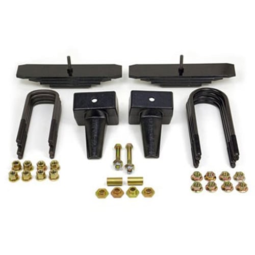 Level out your SuperDuty with ease with the ReadyLIFT Leveling Kit. These front leaf spring trucks require an innovative approach to leveling-lifting. ReadyLIFT is proud to offer a new SST Lift Kit system that will compliment the leaf spring suspension. This system includes a "mini leaf pack" that installed under the factory leaf spring pack and raises the front of the Super Duty and Excursions a total of 2.0" which is what is required to obtain a level stance. To lift the rear ReadyLIFT's time-tested OEM-style 4.0" cast iron rear blocks with built in pinion angle correction and bump stop landings replace the factory 2.0" block for an additional lift of 2.0". This set up establishes a mild lift with a slight rake maintained for towing or hauling. The kit comes with new longer front and rear u-bolts and hardware as well as important panhard bar alignment bushings. Will allow for up to 35" tall tires.