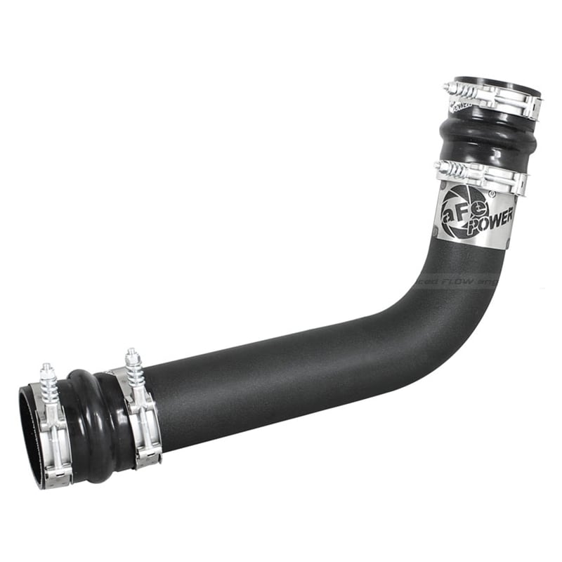 Flow and Performance: The intercooler tube is constructed of 3" mandrel bent stainless steel tubing for maximum flow then powder-coated for heat and corrosion resistance. The smooth bends allow for low turbulence, increasing horsepower, torque and lowering EGT's. Installation is a snap: Utilizes the factory mounting locations to provide stability for a hassle-free installation. Includes constant tension, spring loaded, t-bolt clamps for a leak-free seal and heavy-duty 5-PLY couplings for strength. Fits OEM or aFe's upgraded intercooler. aFe Badging: Unique stainless steel laser-cut aFe Power logo plate is welded-on for an aggressive style.