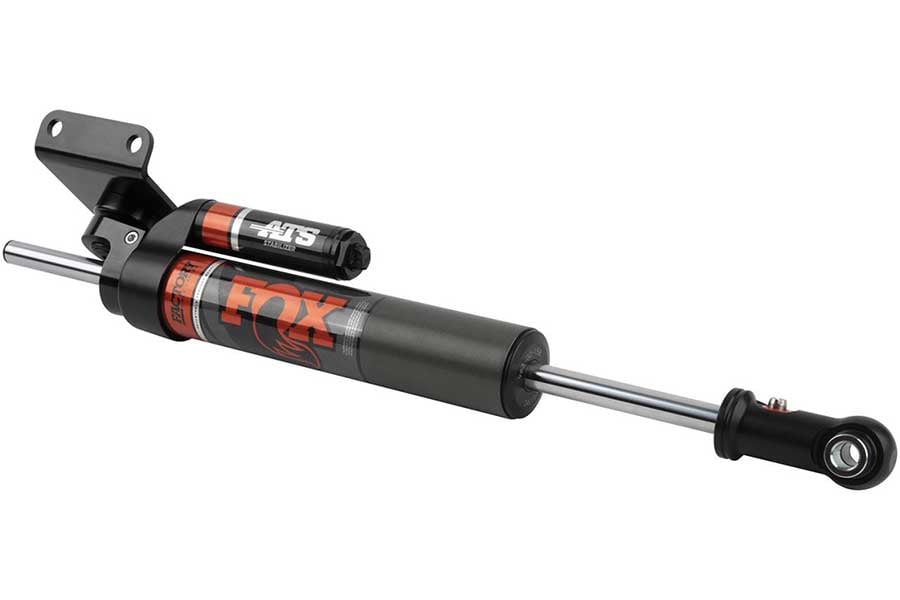 It will also respond to your input with 24 clicks of external adjustment to fine tune the feel. The integrated reservoir allows for additional fluid capacity and improves cooling during extreme use. Also included is FOX's relocating hardware that moves the steering stabilizer up and out of the way utilizing a new track bar relocation bolt and 1-5/8" tie-rod mounting clamp. The ATS represents a revolutionary breakthrough in stabilizer design.