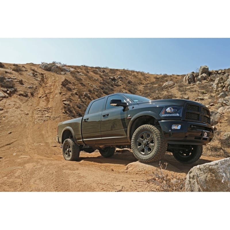 Please check your owner's manual to see whether your Ram has a factory rear air ride and choose that option if it does before ordering. The Air Ride Option cannot be combined with the Performance Option.Your Ram 2500 is a heavy-duty beast of a truck that is suited for use as a job site workhorse, a family toy hauler for those weekend getaways, or an off-road rig capable of taking some serious abuse in the dirt. The new RAM's suspension has been completely redesigned with a radius arm front end and a multi-link, coil sprung rear. ICON engineers' primary focus for this system was to maximize wheel travel while developing a ride tune across the line of ICON shock absorbers that strikes the perfect balance between on-road comfort and off-road performance. Any stage you pick is great for towing, rough construction site terrains, and country dirt roads all while keeping a smooth highway feel. With the endless hours ICON has spent testing and tuning these suspension components and shocks as a complete package, you can rest assured you have the best suspension solution on the market.