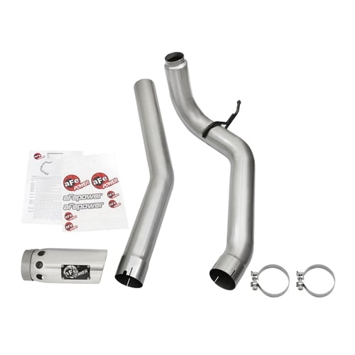 • Included in this exhaust system is a massive 5" Dia. polished stainless steel intercooled tip with a laser-cut stainless steel aFe power badge