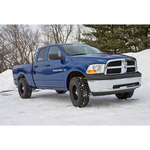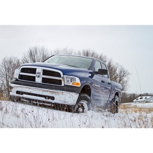 Level out your Ram 1500 the right way with this complete kit from Zone that includes heavy duty replacement upper control arms to ensure your truck is properly aligned, and can take a beating. This system is developed around the same boxed, fully welded, heavy duty upper control arms as in the 2006-11 system. The control arms are made from 1/8" steel and CNC-machined bushing and ball joint cups. The arms use OE rubber bushing and greaseable factory style ball joints for quiet, reliable and low maintenance operation. The new UCAs dwarf the factory arms and provide a larger range of motion via the new ball joint. The ball joint position is also adjusted compared to stock to keep it in a neutral position with 2-3" of lift. The UCAs are boxed separately (#D2301) and can be used with other leveling kit equipped trucks. In addition to the UCAs, the kit comes with strut top spacers that properly reposition and pitch the factory strut in order to gain lift without the chance of the strut rod rubbing on the factory upper isolator assembly (creating a squeak). The strut spacer works within the limits of the factory CV shaft so they do not bind at full suspension extension. The newer generation trucks have longer CV shafts than the 06-11 models, this allows Zone to run 2" of lift safely without a differential drop. While its possible to run a 35" tire with this system, the tire can rub the top of the inner fender under extreme compression. For that reason, Zone recommends a 33x12.50 tires on 17"+ wheels with 5" BS.