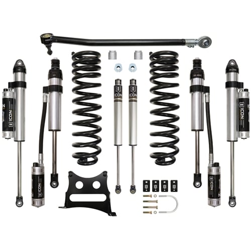 This ICON Vehicle Dynamics 2.5" suspension system is the best way to level your SuperDuty while drastically improving ride quality and performance. The Stage 5 system is perfect for on-road and off-road use including towing, job site duty, and hardcore off-road adventures.