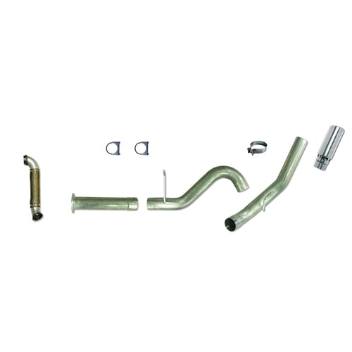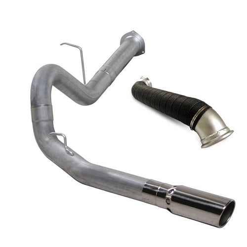 4" OR 5" EXHAUST? WHICH ONE IS RIGHT?That depends! Lets start with the most straight forward exhaust, a turbo back system. For the most part, there's no performance oriented reason that 5" exhaust is a better option compared to 4" until you're around 500 rear wheel horsepower. Up until that level, there's no power increase or any tangible exhaust gas temperature (EGT) reduction that warrants a 5" over a 4" system. That said, some prefer the louder, deeper tone that a 5" system produces over a 4". Now, once you pass 500 RWHP, we would recommend a 5" system to keep those exhaust temperatures down as much as possible. On the flip side, when comparing exhaust with a catalyst in line, such as a catalytic converter or a diesel particular filter (DPF), its arguable to go directly to a 5" system even if you're under 500 horsepower in order to free up as much exhaust restriction as possible.