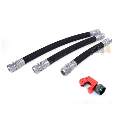 Install the Merchant Automotive repair kit for a no hassle repair you won't have to worry about again. Constructed of D.O.T. approved hose and able to withstand pressures of nearly 2000 PSI. Cut the factory line 1/2" from the factory crimp and install these lines. Properly sized and ready to install.