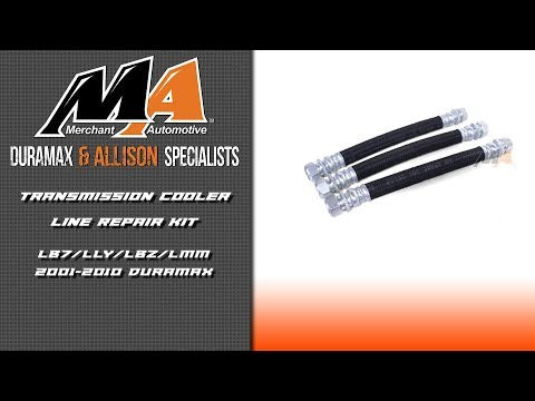 One of the most plaguing issues of owning an Allison equipped Duramax truck are the leaky transmission cooler lines. This kit from Merchant Automotive will eliminate your woes once and for good.A permanent solution to a growing problem. As these trucks are getting a few years older, the transmission cooler lines can start to develop leaks. This is more common in cold weather as the rubber hose on the line shrinks and allows leaks around the factory crimp.