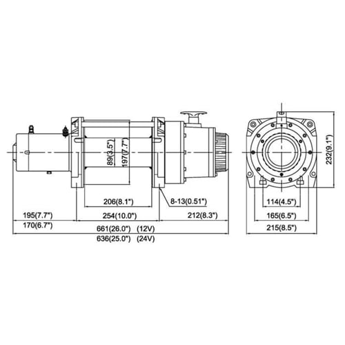 Winch Construction: Aluminum Die Cast Housing with Steel Drum