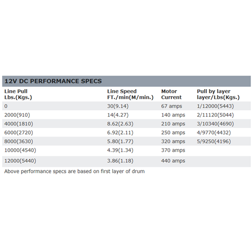 The Heavyweight Series of winches from Warn are designed to do some serious work. Whether its extracting your truck from a mud hole, pulling a downed tree, or helping a neighbor out, you can trust on it to get the job done. With a weight rating of 12,000 pounds and 100 feet of Spydura synthetic rope, you won't be disappointed in the performance of this winch.The WARN combines a proven WARN large-frame winch with 100 Foot of 3/8 Inch state-of-the-art Spydurasynthetic rope. The rope's heat-treated construction provides maximum tensile strength, and the temperature-resistant sleeve on the first layer provides maximum heat protection. The winch's 12,000 Pounds pulling capacity makes it great for large pickups and heavier SUVs.