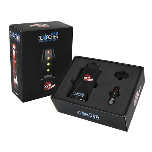 SCORCHER BLUE App: The aFe POWER SCORCHER BLUE is a free app in the Apple and Google Play stores and allows the smartphone device to become a handheld remote for the module. It also displays fuel pressure and turbo boost gauges, allows you to customize each power mode, upgrade to the latest version, measure 0-60 and 1/4 mile times.