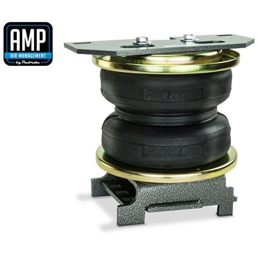 Have you ever noticed a difference in ride control when driving empty vs. driving fully loaded? Your truck's factory suspension was designed as a compromise between capability and comfort. When hauling heavy loads, the rear springs can be pushed to the limit - resulting in excessive bounce, sagging ride height, and an overall feeling of instability. With the simple addition of a Pacbrake Alpha HD Air Spring / Air Suspension Kit, you can distribute weight evenly to your tires, supporting any load without overtaxing your existing system.Pacbrake Heavy Duty Double Convoluted Alpha HD Air Spring / Air Suspension Kits are the only air springs (or air helper springs) on the market with one piece aluminum end caps and 20 support wires giving you maximum strength and durability! Each Alpha HD Double Convoluted Air Spring / Air Suspension Kit is equipped with corrosion resistant roll plates, precision laser cut powder coated steel brackets, grade 5 plated hardware, airline and all accessories required for the perfect bolt on install.With Pacbrake you can level your truck's stance and eliminate your vehicle's sag, sway and bottoming out while providing added support for an overall smooth and safe ride.