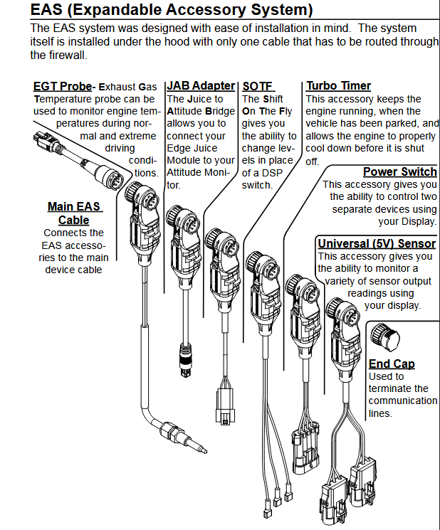 The EGT temperature probe must be installed in the exhaust manifold for the most accurate temperature readings. The closer to the combustion chamber, the better. Most trucks will require drilling and tapping of the exhaust manifold to 1/8-NPT (bit and tap not included). This kit includes exhaust manifold fitting, probe, wiring, and an expandable EAS starter cable. So adding more accessories down the road is plug-n-play.