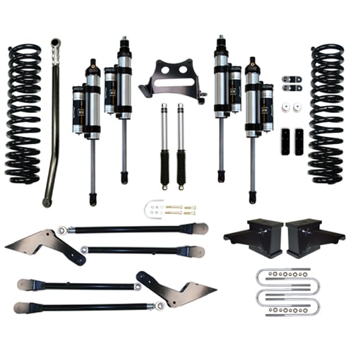 All of the suspension components are covered by ICON's Life-time Warranty and the shocks have a one year warranty against leaking. This 4.5" System for the 2008-2010 Super Duty's is one the best riding suspension systems ICON has ever developed. This system has been engineered using the highest quality materials and components. Not only are these shocks capable of gobbling up any terrain, but the 4-link conversion has the ability to control the axle much more efficiently in comparison to the factory radius arm system. By converting to a 4-link, you will notice a vast improvement in ride quality, greater articulation, and less axle dive.