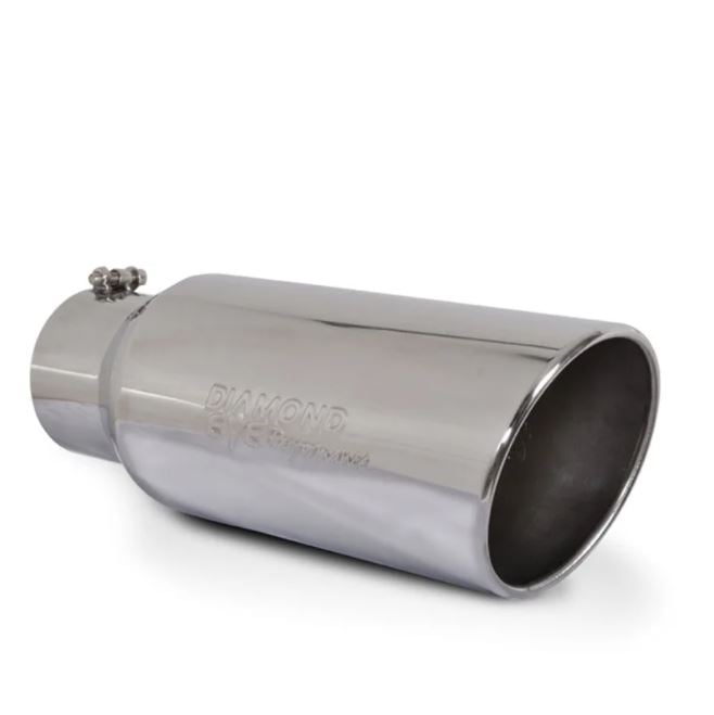 Diamond Eye makes a great exhaust kit and at Diesel Power Products we take it a step farther by offering you a choice of various mufflers or straight pipe to go with their systems, as well as several exhaust tip options. DETAILS OF EACH MUFFLER/ELIMINATOR PIPE OPTION Diamond Eye Muffler: This is the standard muffler that comes in the kits. Featuring a stainless steel construction and perforated core, you really can't go wrong with this muffler. The muffler itself gives the truck a deep tone, while not being overly loud and does a good job of reducing exhaust drone. No Muffler / Straight Pipe: For those that want the uninhibited sound of straight pipe, here it is. This is a complete kit, but instead of shipping with a muffler, you will receive an eliminator pipe to give you the exhaust bark you're after. If you ever want to put a muffler back into the system, you'll merely need to remove the eliminator pipe and install a proper length muffler. EXHAUST TIP OPTION No, it won't add 20 horsepower or give you better mileage, but adding an exhaust tip (or tips on dual kits) simply adds the finishing touch. As another way to make ordering easier, we allow you to simply add Diamond Eye's most popular tips right from this page to complete your kit. You have the option of Diamond Eye's 5" to 6" angle cut, rolled edge, bolt-on tips in either a stainless steel or black powdercoat finish. We will add the appropriate amount of tips for a single or dual kit. And if you either don't want to add a tip, or would like to choose a different option, no problem, just select "No Tip(s)."