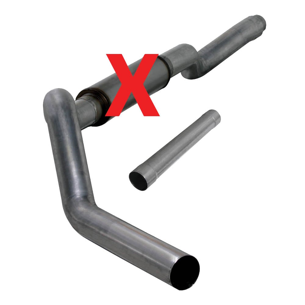 No Muffler / Straight Pipe: For those that want the uninhibited sound of straight pipe, here it is. This is a complete kit, but instead of shipping with a muffler, you will receive an eliminator pipe to give you the exhaust bark you're after. If you ever want to put a muffler back into the system, you'll merely need to remove the eliminator pipe and install a proper length muffler.