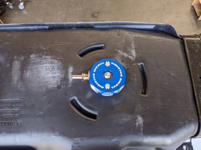 The most efficient way to feed fuel is to let gravity do the work! Instead of relying on overcomplicated pick up systems in the tank, or running the risk of quarter tank issues from draw straws, simplify things with this sump kit from Sinister! Now, fuel is fed from the bottom of the tank via a large bowl to a 1/2" line that will ensure your pump will NEVER starve for fuel! This kit is designed to only work with aftermarket lift pumps with 1/2" lines, such as FASS.