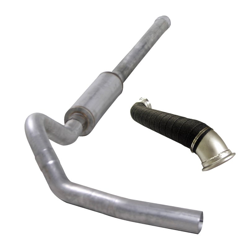 Diamond Eye makes a great exhaust kits for your Duramax and at Diesel Power Products we take it a step farther by offering you a choice of muffler or straight pipe kits, and tip options to go with their systems. This system features a 409 stainless steel construction and comes with the turbo direct pipe to enhance air flow right from the start of the system.