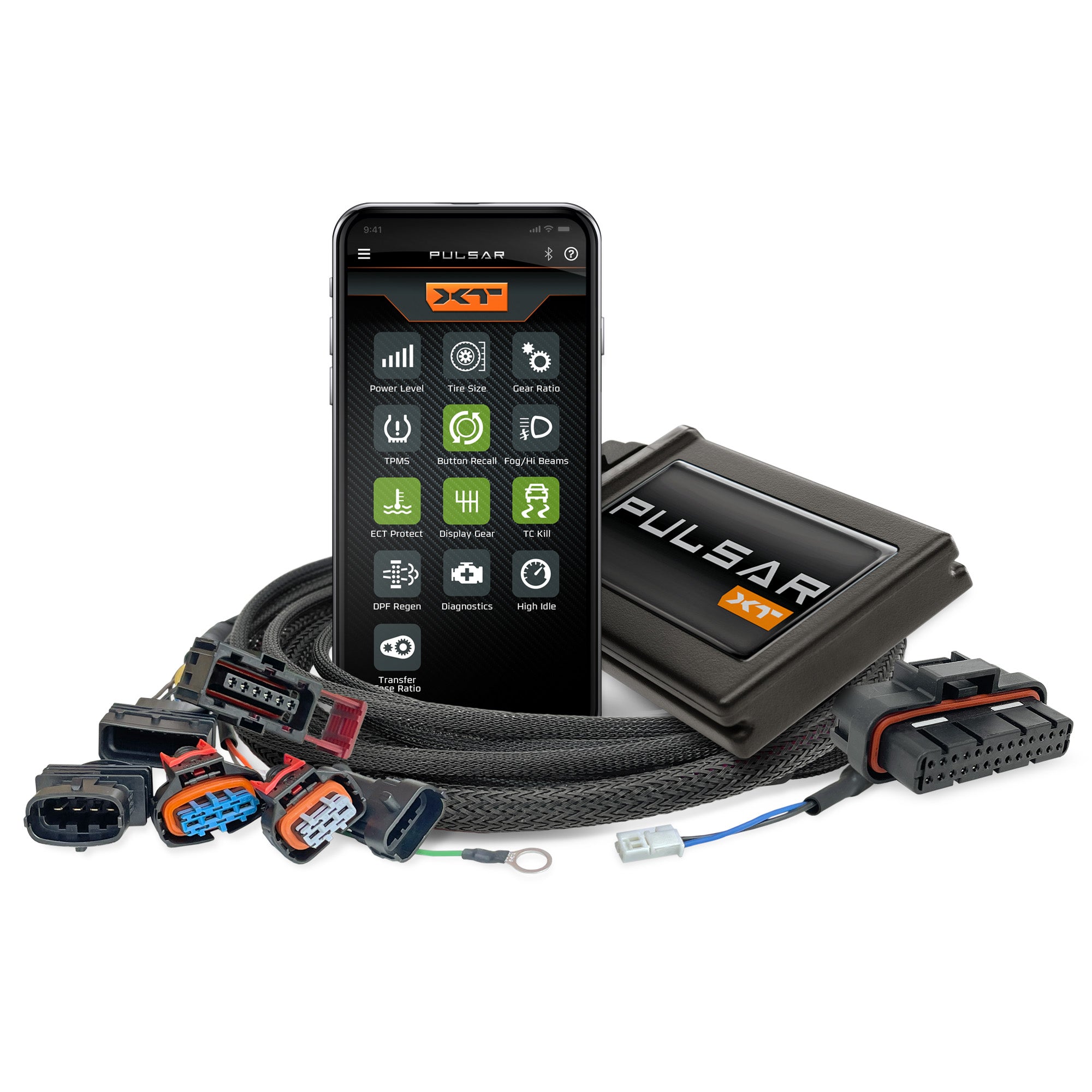 Add up to 45hp/75ft-lbs torque to your Jeep diesel while improving drivability, throttle response and feature control. Pulsar XT is an all-new take on performance and calibration for your 3.0L EcoDiesel Ram 1500 and it's unlike any other device on the market. Pulsar XT is an innovative inline module engineered to keep your factory PCM untouched, leaving no trace in the system when removed for dealer service. Enjoy Pulsar XT's shift-on-the-fly performance gains, with 5 power levels changeable through your factory steering wheel controls and user adjustable throttle pedal sensitivity. Pulsar XT also offers full calibration adjustment through an innovative smartphone app that allows you to adjust your speedometer for larger tires, transfer case ratio changes and gear ratio changes.