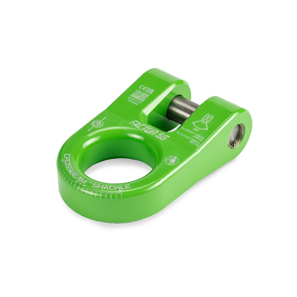 Need some extra attachments on your Truck or Jeep? Adding shackles to a vehicle isn't just for those going way off-road. Adding more attachment points can help with everyday use and these crossbeam shackles from Factor 55 are built tough and reliable enough to handle any job you throw at them. The unique crossbeam design makes sure that the shackle remains secure and doesn't spread under sideload. Additionally, the large circular hole can work with both steel and soft synthetic components so you have a versatile attachment for whatever the job is. It's strong, it's versatile, and it also comes in a variety of colors to choose from. Next time you're stuck, don't BE stuck without one of Factor 55's Crossbeam Shackles.