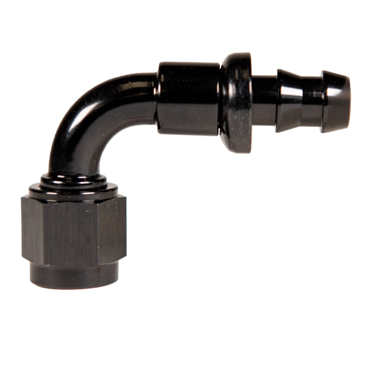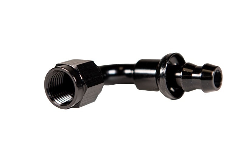 This universal fitting from Fleece can be used in various locations for custom applications. This 90 degree fitting features a -8 AN hose end with a -8 AN adapter size. This fitting is made from aluminum and has a black anodized finish.