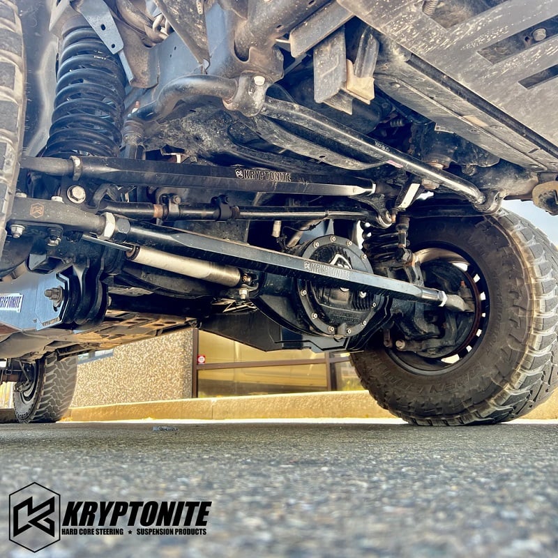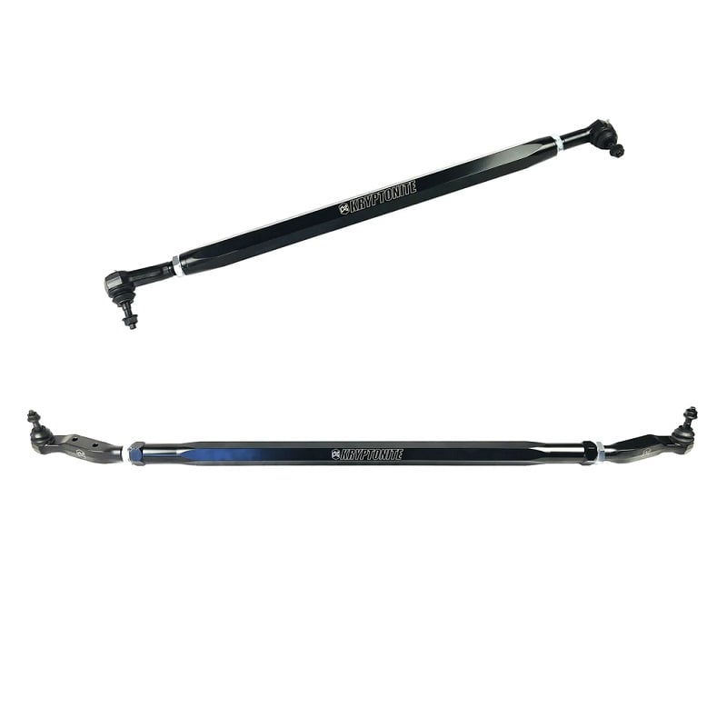 Does the steering in your Ram Cummins feel a little sloppy? Whether you're running oversized tires, have racked up some miles, or whatever the reason, sooner or later the factory tie rods will wear out, and when that time comes, sure, you could replace with factory or whatever is available at your local parts store, or...you can go for a big upgrade for more strength and a tighter steering. This kit from Kryptonite is just what you need if you're looking for the ultimate steering upgrade! Featuring a solid 7075 aluminum design with a massive 2" outer diameter, it was designed and built for maximum durability and adjustability with no need to remove from the truck to adjust. This versatile steering kit will allow for correct steering wheel position and alignment at any ride height from stock to 6" of lift. The solid design maintains straight tracking and drivability, less wander, and a more positive steering feel.