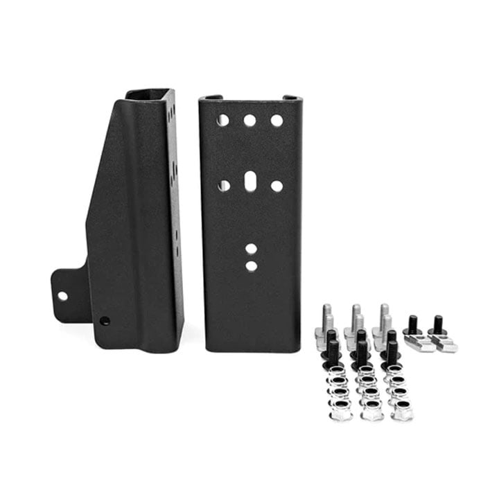 Thinking of adding an awning to your bed rack but unsure on how to mount it? Leitner has done the hard work and built a heavy duty bracket for the biggest awnings and it takes all of the questioning out of mmounting and installation. The HD Awning Bracket was designed for the heaviest and largest awnings, and specifically engineered for the Alu-Cab Shadow Awning but will fit many more. This is a MUST HAVE product if you are planning to mount an awning longer than 60” on a Jeep Gladiator as it allows the awning to go over the roof. The HD Awning Bracket attaches directly to the load bars which does NOT allow the rear load bar to slide.