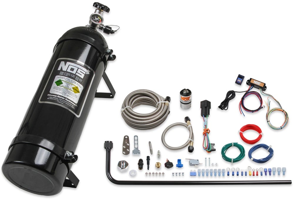 Packed with everything you need to dominate the competition, the kit includes your choice of either the iconic NOS blue or sleek black 15 lb bottle, rugged brackets, a Super ProShot solenoid, a nitrous feed line, and all the wiring for a smooth setup. Adjustable horsepower settings mean you can start with a 75HP bump on a stock setup and take it all the way up to a tire-melting 150HP with the right mods and a nitrous-specific tune.The NOS Mini 2-Stage Controller takes this system to another level. With this advanced electronic controller, you can customize and manage how your nitrous flows, delivering smoother power and ultimate control. The Mini 2-Stage Controller allows you to program the nitrous activation in two stages: start small for traction off the line, then unleash the full nitrous fury once you’re rolling. It’s the ultimate tool for dialing in your performance and maximizing both safety and power delivery.