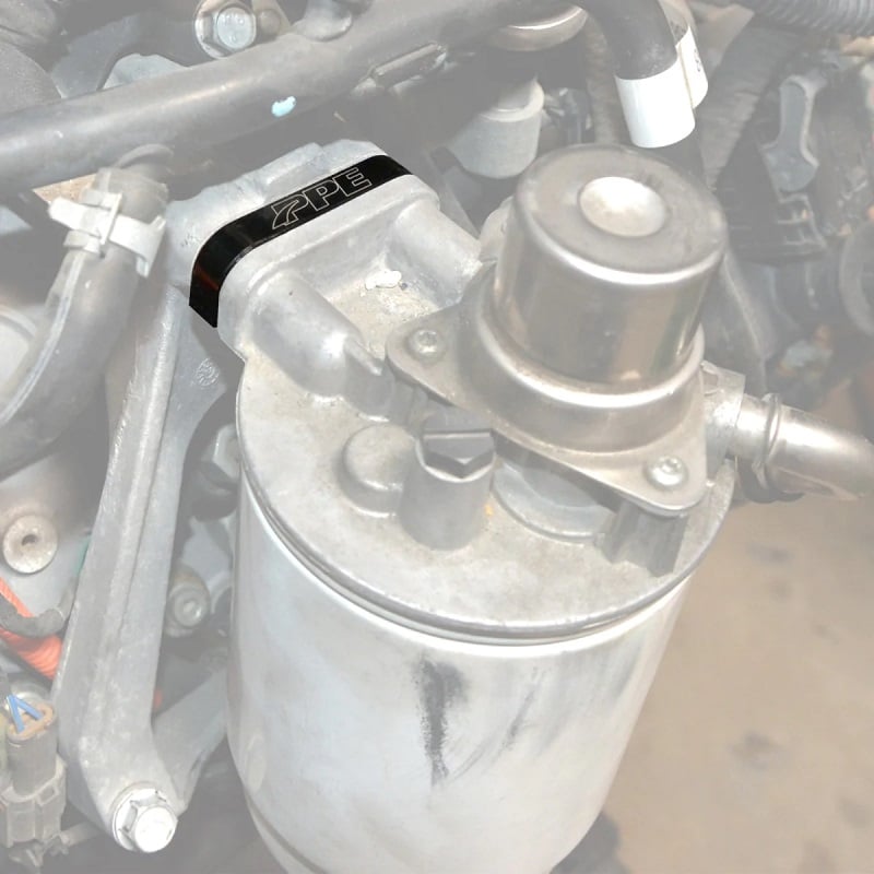 The factory location of the factory fuel filter in your Duramax makes it difficult to get a tool around the filter for servicing. This issue can be easily resolved with the PPE Fuel Filter Mount Spacer. This spacer allows you to gain 3/8" of extra clearance when servicing your fuel filter.
