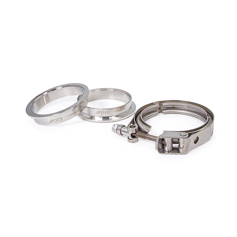 For those building custom turbo kits, intercooler piping, or exhaust work, the PPE Quick Release 3-Piece Stainless Steel V-Band Clamp sets are perfect for your build. Manufactured with corrosion-resistant 304 stainless steel which offers better durability to the everyday extreme environmental conditions these parts are subjected to. Inside interlocking 304 stainless steel flanges and deeper outside register to ensure a secure, tight fit that are able to withstand high pressures.