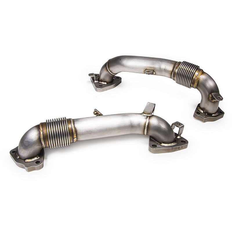 Replace and upgrade your undersized, restrictive stock up-pipes in your L5P Duramax with these high flow, OEM length, performance up-pipes from PPE. These direct replacements have a 46% larger flow area over stock, which results in a deeper-breathing power-plant, while maintaining the mandated Federal emissions standards of stock.