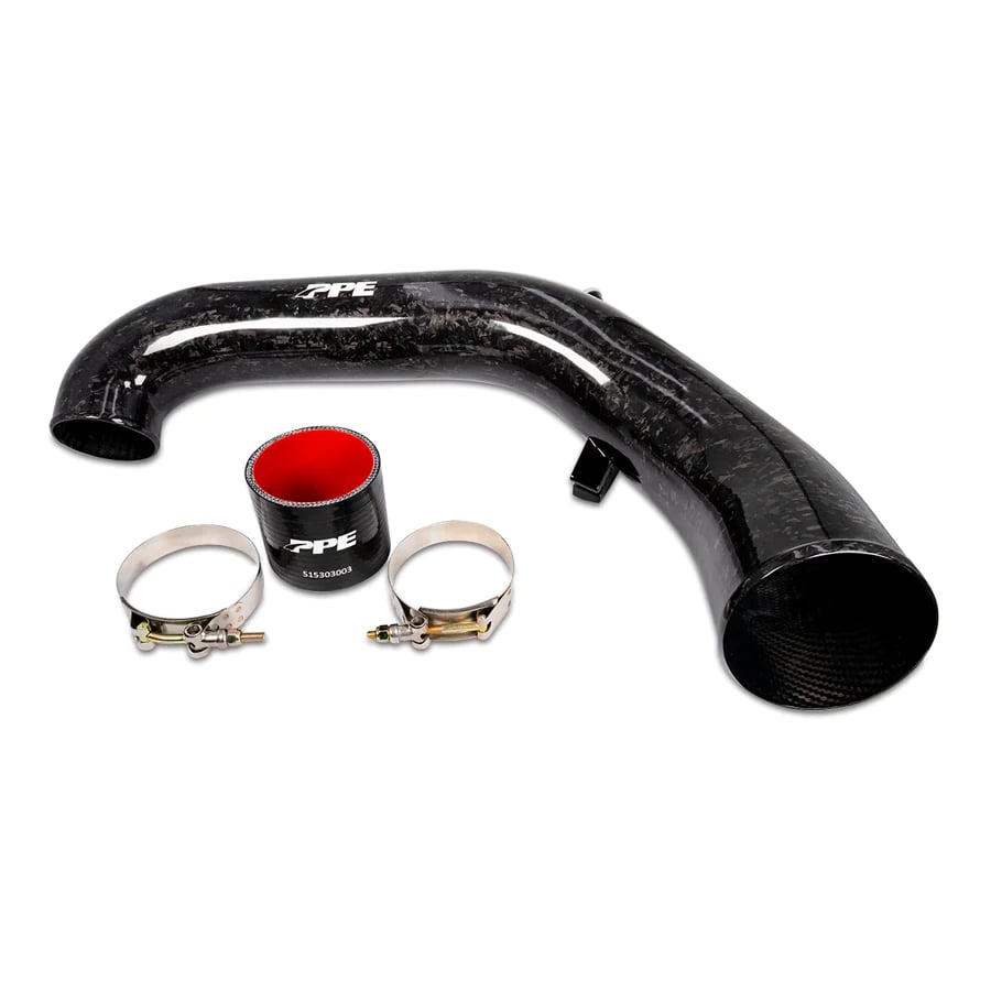 Worn-out factory inlet tubes holding you back? PPE’s Zilla Carbon Fiber series delivers improved airflow, durability, and supercar style. Made from 100% dry/prepreg carbon fiber, these tubes replace restrictive plastic stock parts and eliminate the resonator for better performance.