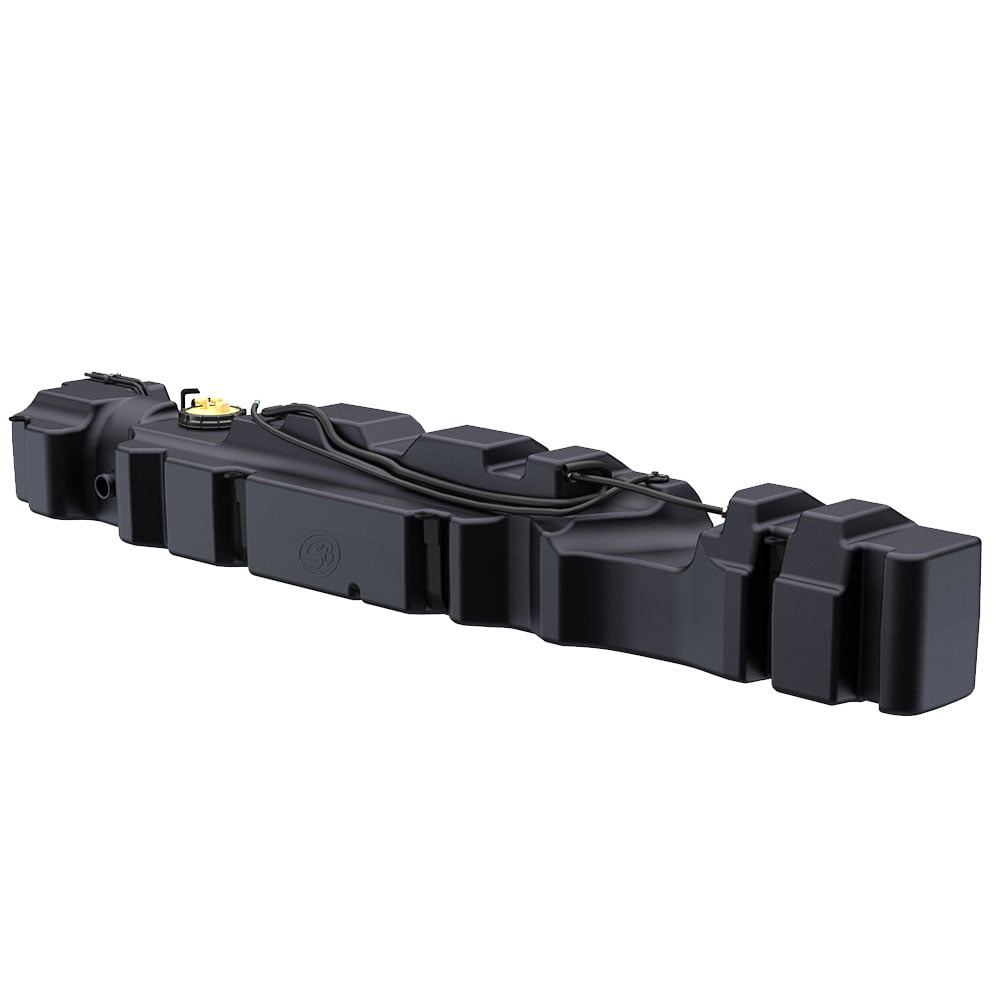 The S&B Tank comes with all the components to remove your 24 gallon tank and replace it with our 47 gallon tank. The tank mounts in the stock location with an additional rear strap. The tank occupies the space forward and rearward of the original tank and does not stick out anymore toward the driver side than the original tank.