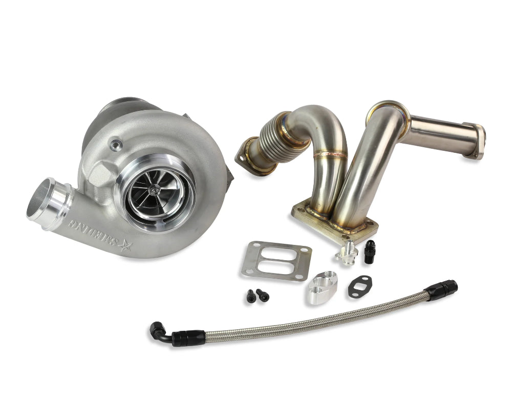 The Smeding Diesel T4 S300 Kit ensures improved horsepower without compromising the drivability you desire.This eliminates common issues like stuck vanes or faulty solenoids, too. The Gen 2 Kit features advancements over the original design by removing the aluminum turbo pedestal, allowing retention of the OEM pedestal for seamless integration with the factory exhaust, air intake, and a hot-side intercooler pipe. The package includes heavy-duty T304 stainless steel up-pipes with a high-flow T4 flange, -6 oil supply line and fittings, and all necessary installation hardware.