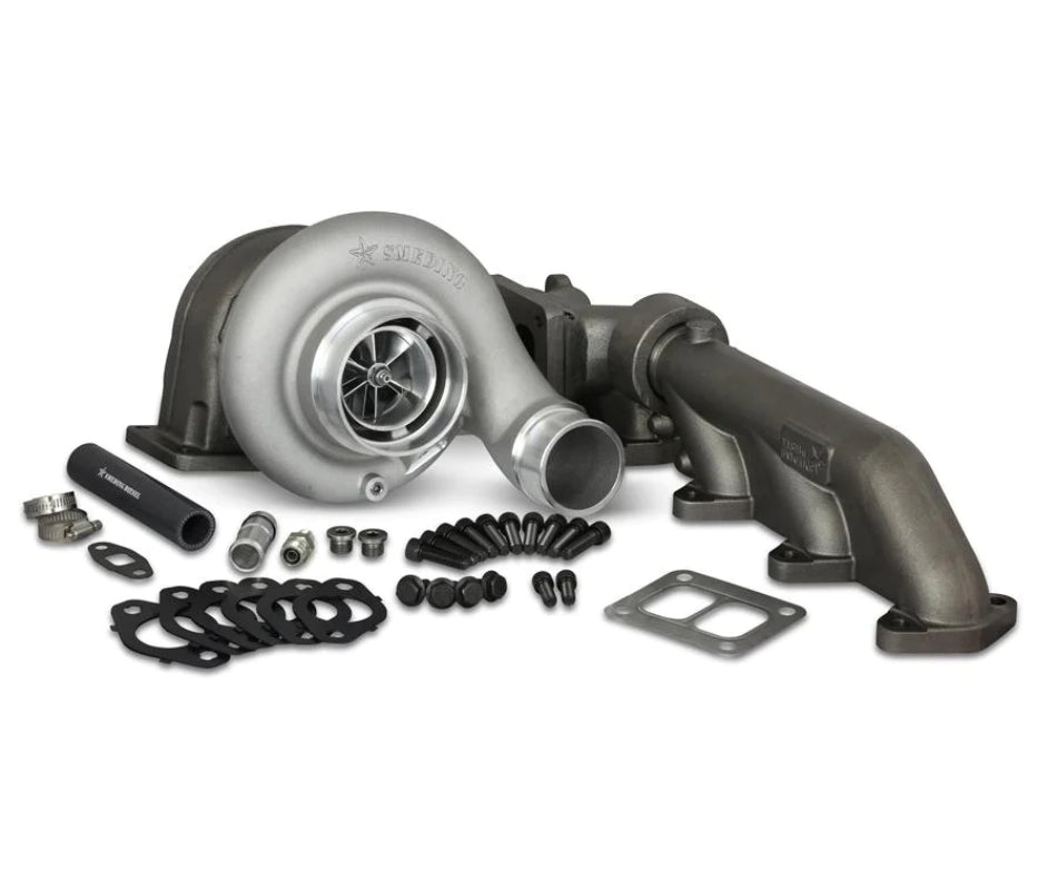 If you own a 2003-2007 5.9L Cummins, you're probably familiar with the variable geometry Holest turbo, which, while cleverly engineered, has gained a reputation for frequent failures. The exposure to soot, carbon buildup, and corrosion leads to issues with the movable VGT components in the exhaust housing. Additonally, problems can arise with the electronic controlled VGT actuator, too. Luckily for us, turbocharger kits that rid the plague of that by using a tried and true S300.