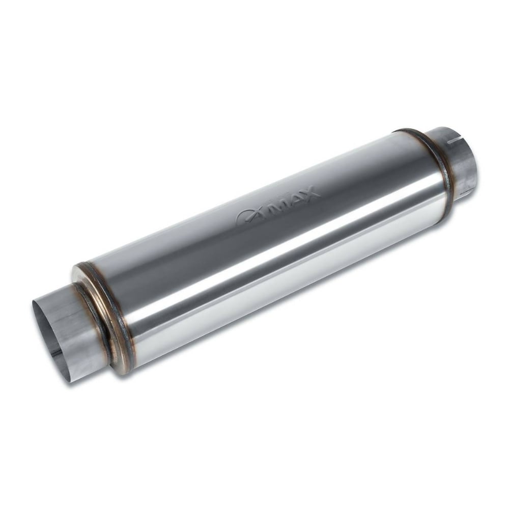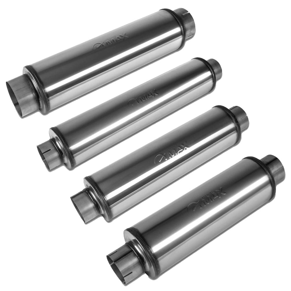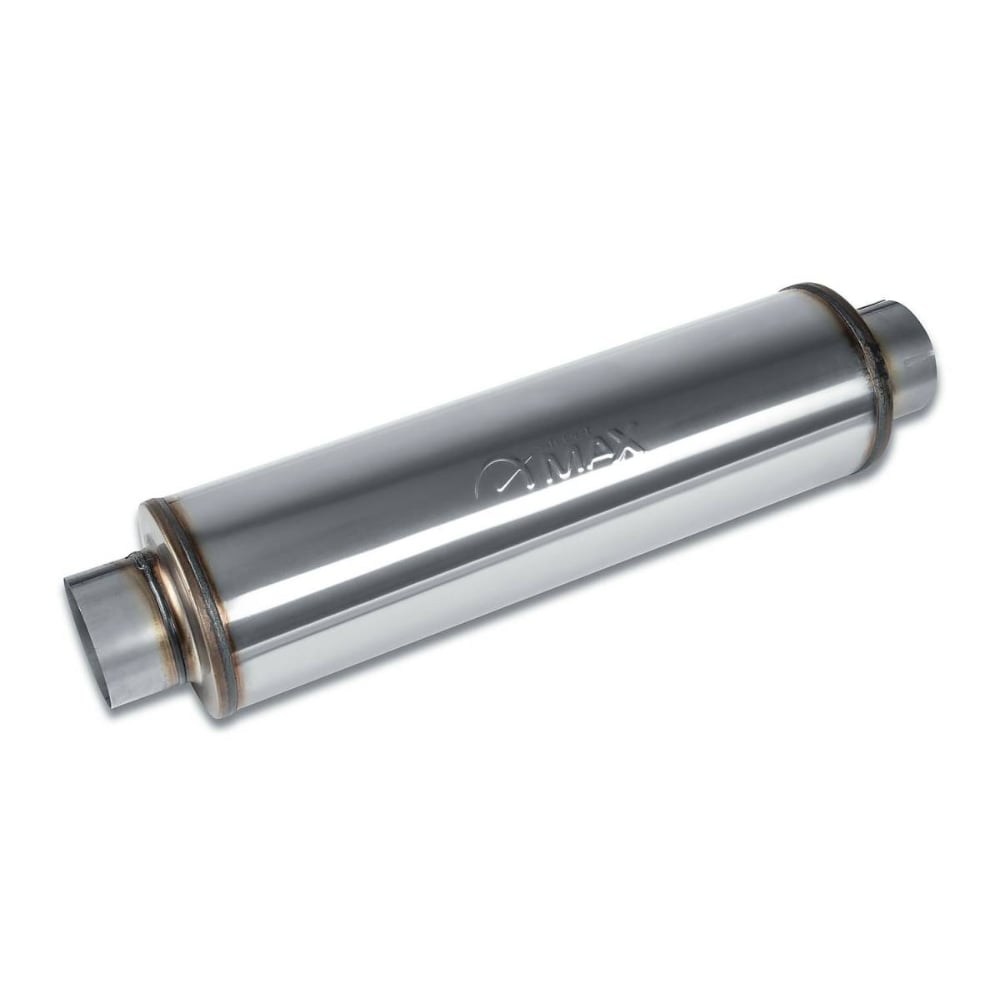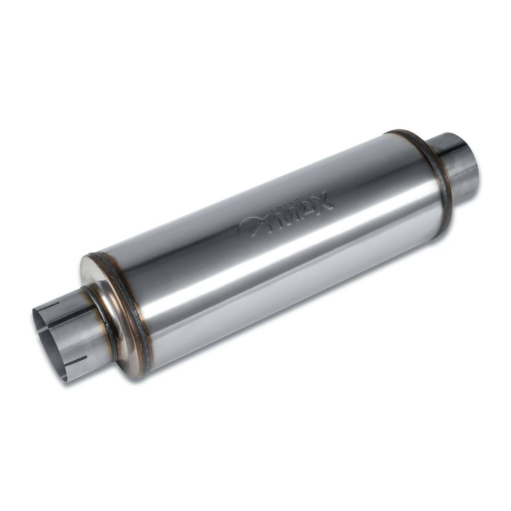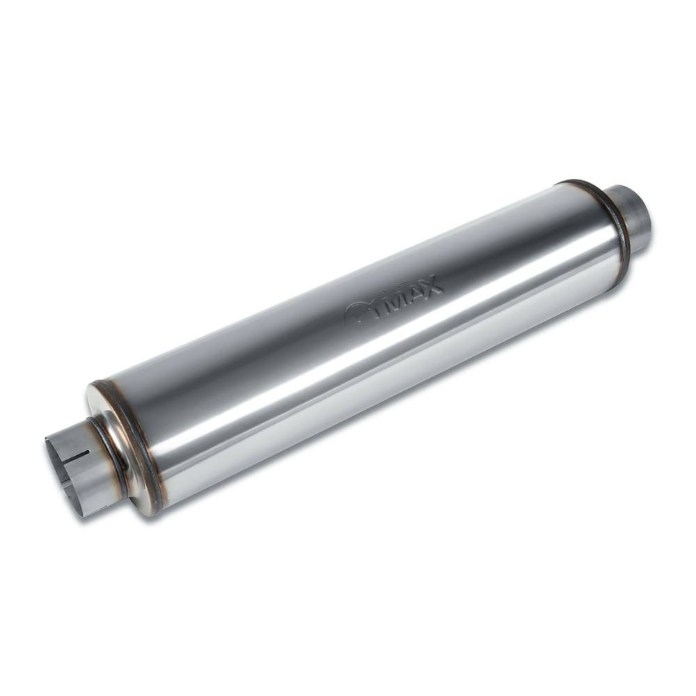 Street Performance's 7" Round Body 4" In X 4" Out and 5" In X 5" Out Street Max Muffler offers a rich performance tone minus the bothersome interior drone or piercing external sound frequencies (rasp). Its innovative design includes a high-heat thermal mesh, ensuring exceptional sound control while preventing blowouts. The straight-through core design optimizes flow, enhancing horsepower and torque. Crafted from robust 16-gauge 409-grade stainless steel, this exhaust system guarantees superior strength and durability.