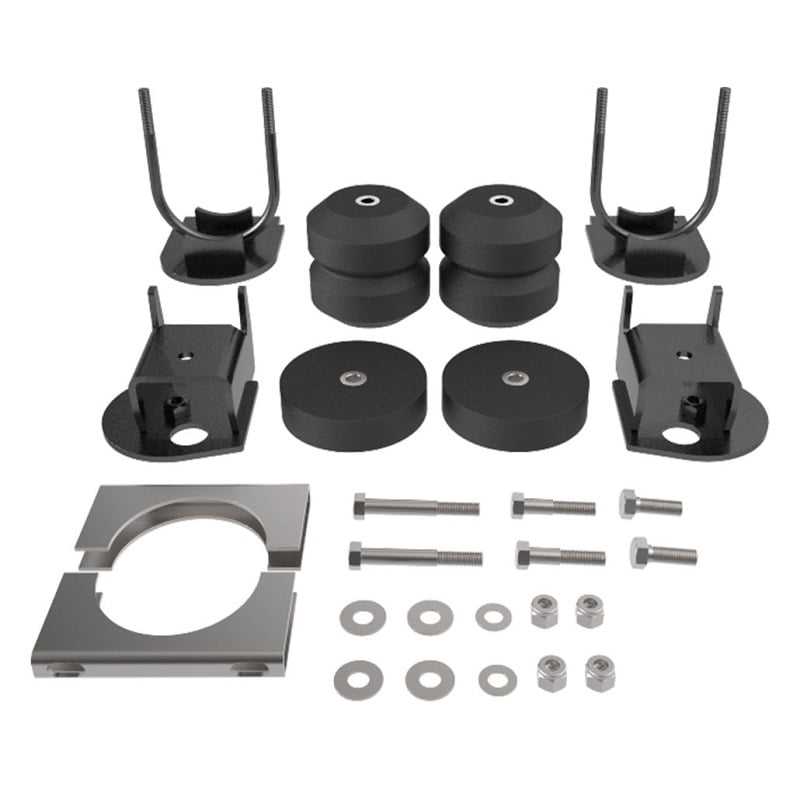 Each laser cut piece of steel is precision bent and powder-coated to ensure a quality fit. Timbren engineered their hollow rubber springs to deliver a progressive spring rate. In other words, the more weight that pushes down on the rubber springs the harder they work to prevent rear end sag. Whether you’re pulling a trailer or carrying a heavy load in the bed of your truck, the hollow rubber springs adjust automatically to keep the vehicle level at all times.