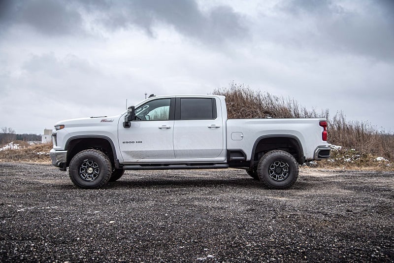 Bring your HD Duramax to new heights with this complete suspension system from Zone! This 3" Adventure Series Suspension System is built around a set of massive boxed steel upper control arms, along with traditional torsion key technology in order to gain 3" of lift. By using the fabricated arms, equipped with factory style ball joints and rubber bushings, the system is able to maintain a better quality ride and suspension travel over standard "leveling kits". In addition, a front differential drop is included to keep CV angles within the factory operating range.