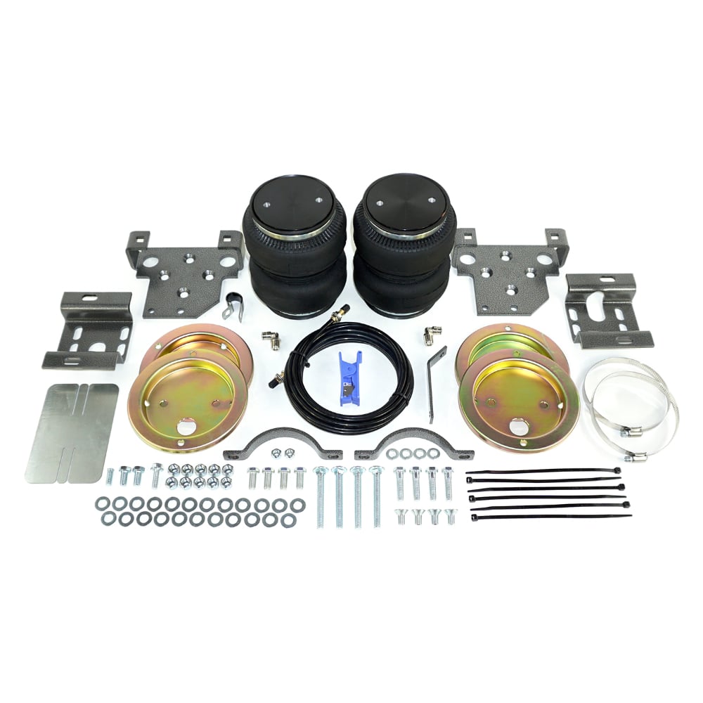 Pacbrake's truck air bags (air springs) allow you to easily level out your truck's stance for any towing / hauling situation with the ability to adjust the amount of air in each (bag) spring. Filling the springs can be done in two ways, the most standard being our manual fill kits that provide you with easily accessible fill valves located near your rear license plate OR the more convenient option would be adding onboard air to your truck and operating your air suspension system right from the driver's seat. Pacbrake air springs work in addition to your existing suspension, not as a substitution. It is important to note that by installing an air suspension kit, your max load capacity (GVWR) does not increase.