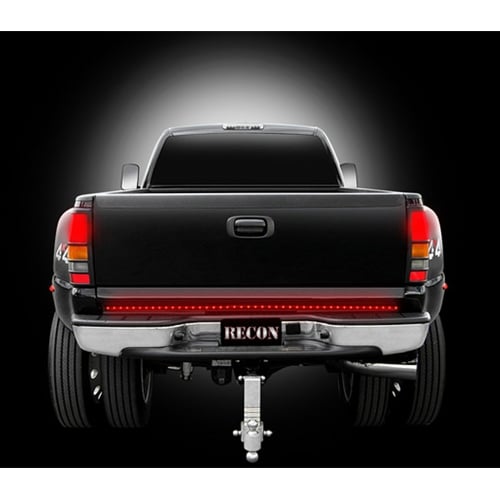 RECON's Line of Fire Tailgate Light Bar functions as a Red LED Brake Light, Red LED Running Light, Red LED Turn Signal Hazard Light. Get Lit w RECON Today! RECON's LED Tailgate Bar takes just minutes to install and are street legal and have been approved for use by the National Highway Traffic Safety Administration (NHSTA).