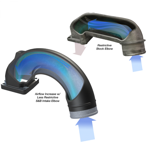BUILT TO PERFORM - S&B Intake Elbows are CNC Machined from a 6061 T6 Aluminum and replace your restrictive stock turbo inlet manifold. S&B intake elbows maximize airflow, improve turbo spool, and lower EGT's (Exhaust Gas Temperatures). Every intake elbow comes complete with all hardware and gaskets needed for a quick, hassle-free installation